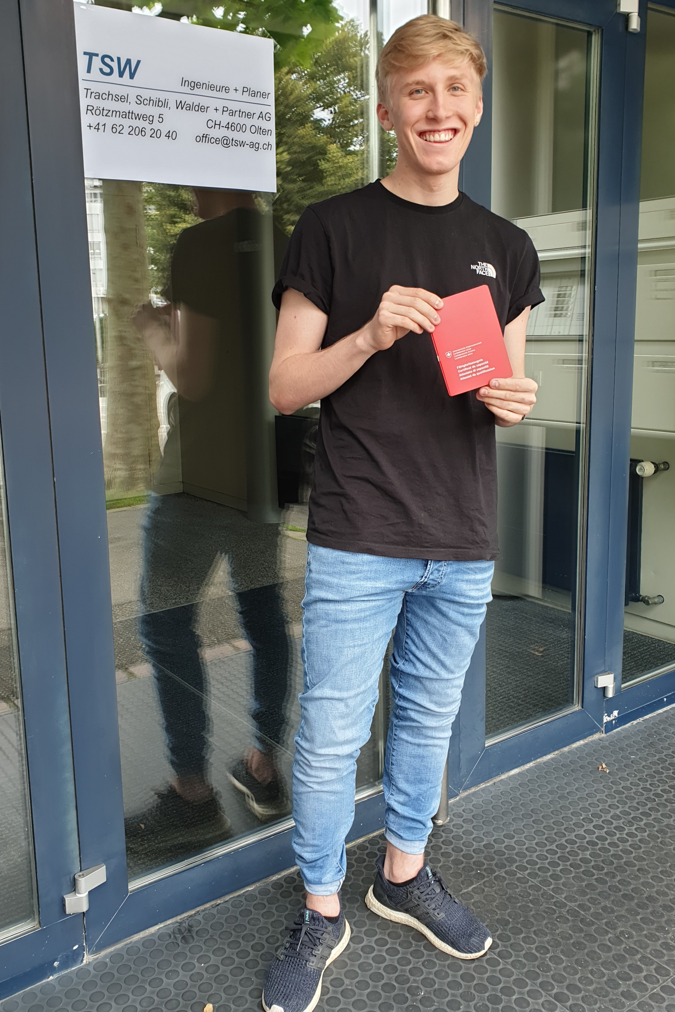 Wir gratulieren Adam Erdösi ganz herzlich zur bestandenen Lehrabschlussprüfung Zeichner EFZ Fachrichtung Ingenieurbau